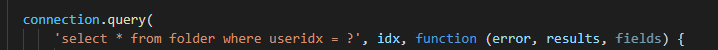 그래서 쿼리문에 ? 물음표를 넣어두고 query() 함수의 두번째 파라미터 자리에 변수를 넣어줍니다.