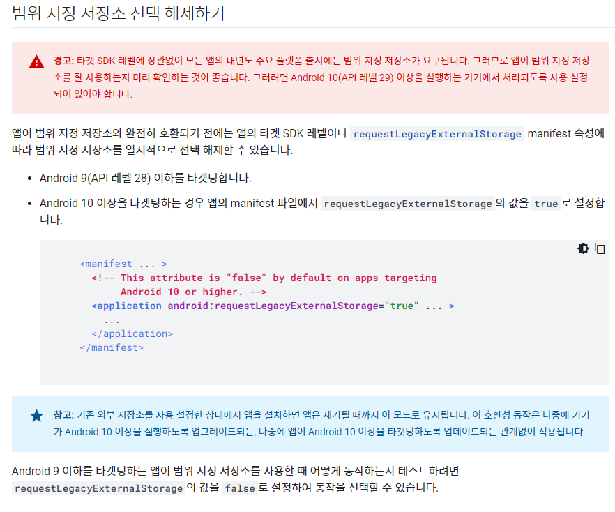 manifest에 requestLegacyExternalStorage 속성을 true로 해줍니다.
