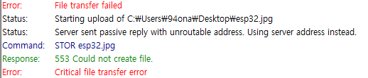 Response: 553 Could not create file.