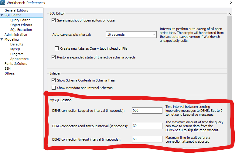 DBMS connection read timeout interval : 읽기 시간 초과 간격