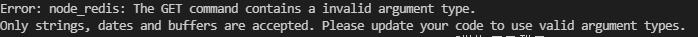 Node.js에서 Redis를 사용하다보니 에러가 발생했다. Redis에서 Key를 보내어 GET 했는데 발생했다.