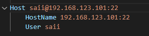 근데 이렇게 하면 계정이름이 윈도우 계정이름으로 잡힌다. config 파일을 열어서 Host 부분을 보면 IP주소와 포트번호만 써있으니 Host IP주소 앞에 User명@IP주소:포트번호로 바꿔주자