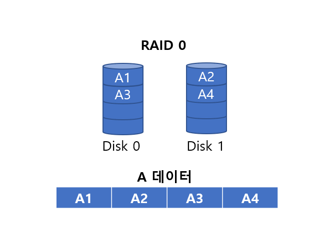 1. RAID 0 - Striping, 스트라이핑(부르는 사람 맘인듯하다...난 스트리핑이라고 부름...)